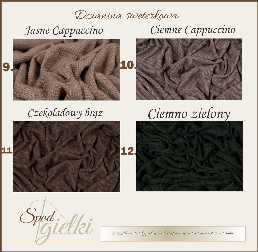 Materiał zewnętrzny: dzianina swetrowa 520 g/m²