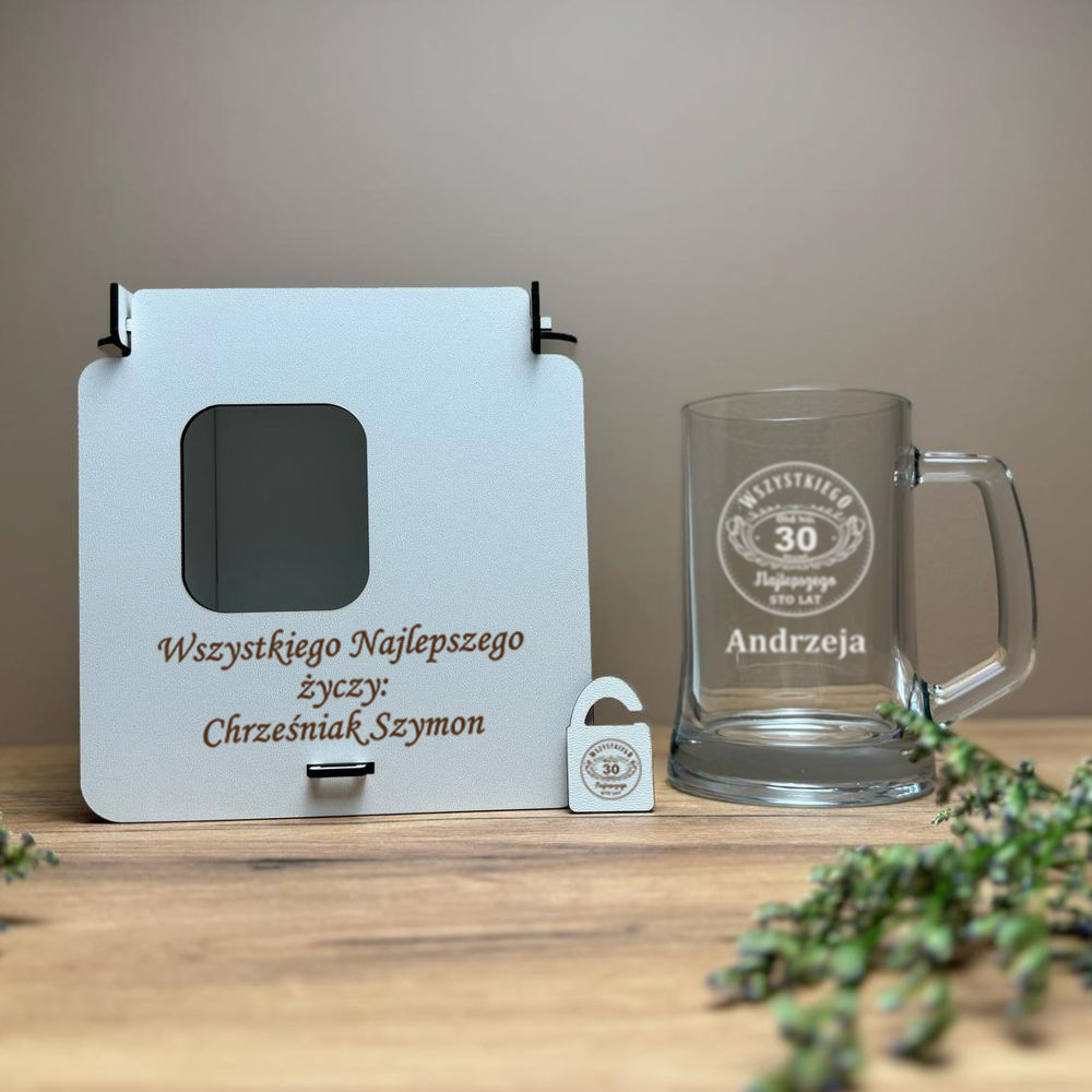 Szukasz praktycznego, eleganckiego i spersonalizowanego prezentu? Nasz kufel z rączką o pojemności 660 ml w drewnianej skrzynce to świetny pomysł na urodziny, imieniny lub upominek dla miłośnika piwa. Dzięki możliwości graweru staje się wyjątkową pamiątką, która zachwyci obdarowaną osobę.